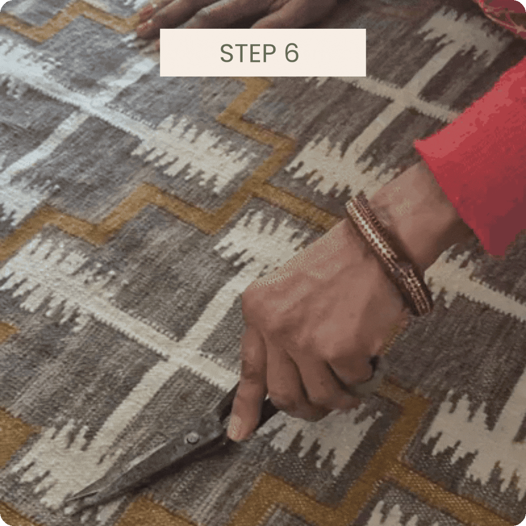 Final touches bring the rug to life—hand-sewn binding, trimming, and embossing ensure perfection in every detail.